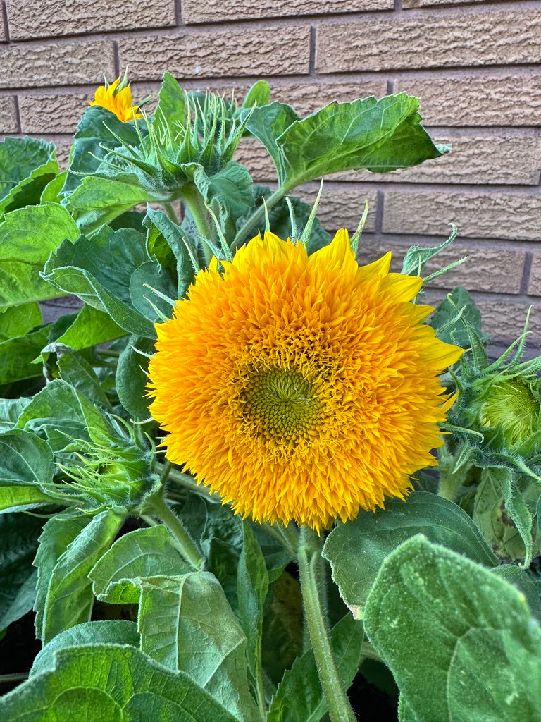 A charming sunflower producing fluffy, golden-yellow double blooms. Compact and bushy, perfect for borders, containers, or small gardens. Easy to grow, attracts pollinators, and excellent for cut flowers.